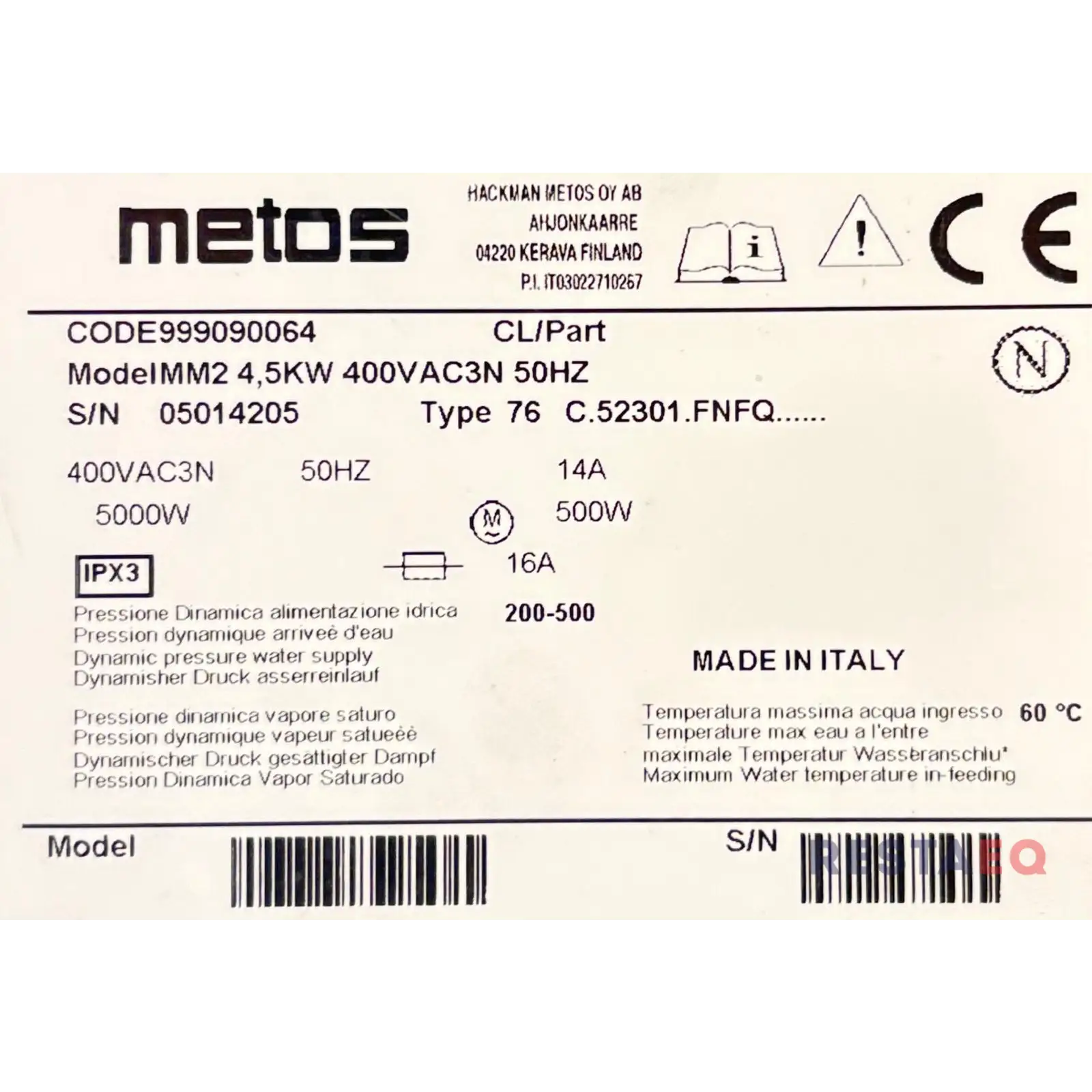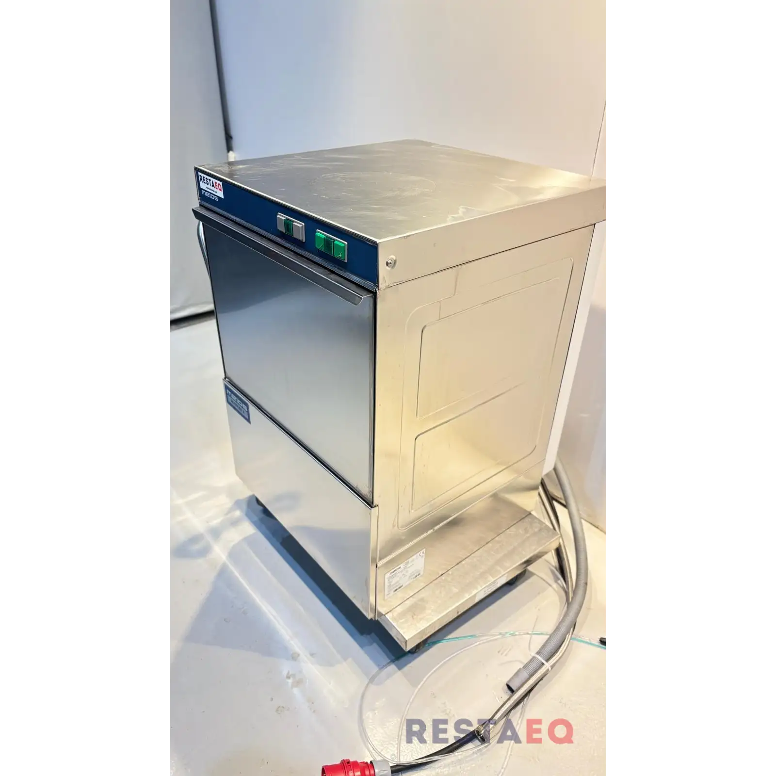 Kone on säädetty RestaEQ Konetiskiaine 100:lle ja RestaEQ KW Huuhtelukirkasteelle. Koneen mukana tulee 10L pesuainetta ja 5L huuhtelukirkastetta.